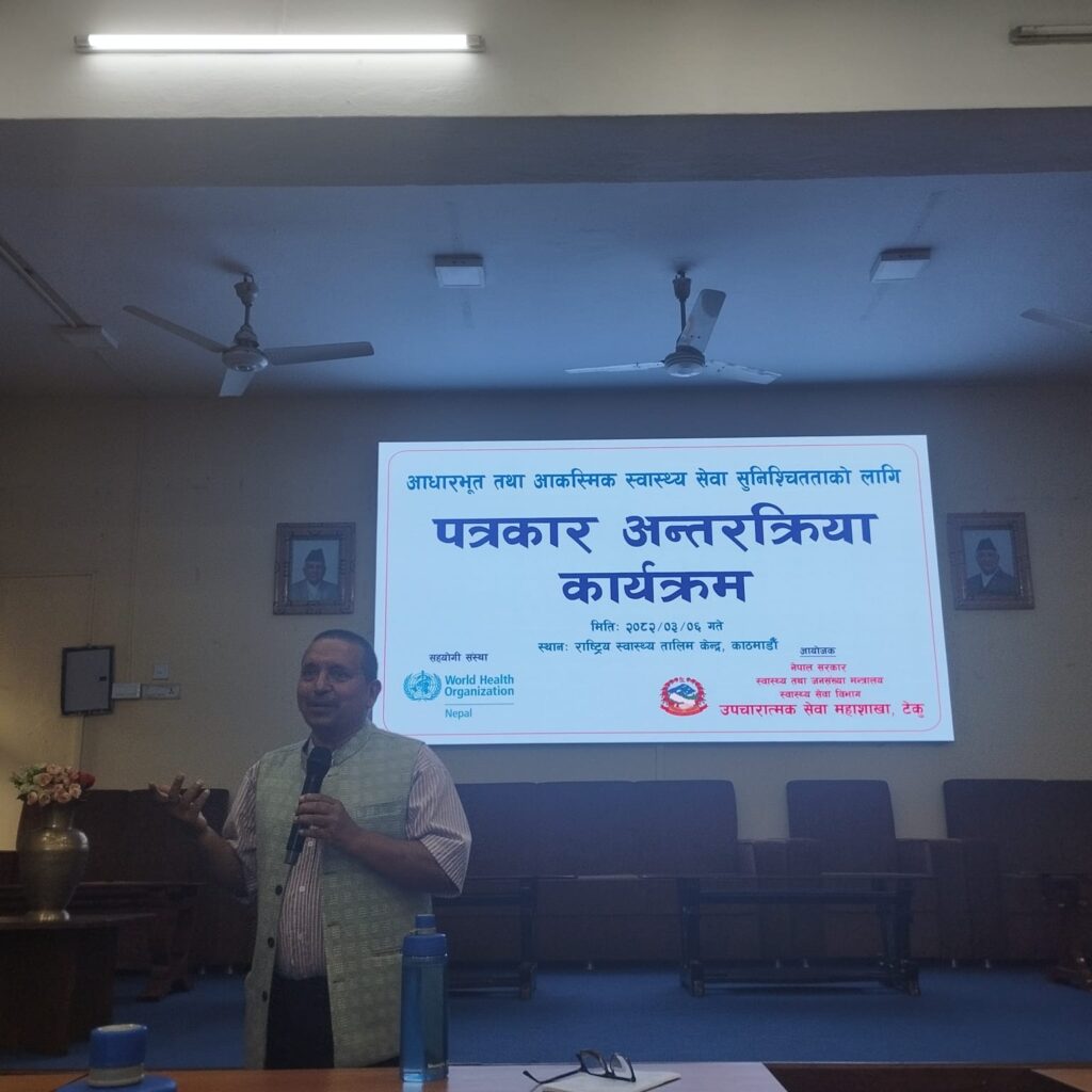 स्वास्थ्य सेवा विभाग व्यवस्थापन शाखाका पूर्व निर्देशक भोगेन्द्रप्रसाद डोटेलले आधारभूत स्वास्थ्य सेवा नागरिकको संवैधानिक अधिकार भएको बताउनुभयो ।